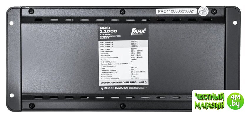 Мощность на канал при 1 Ом | 1 000 Вт |