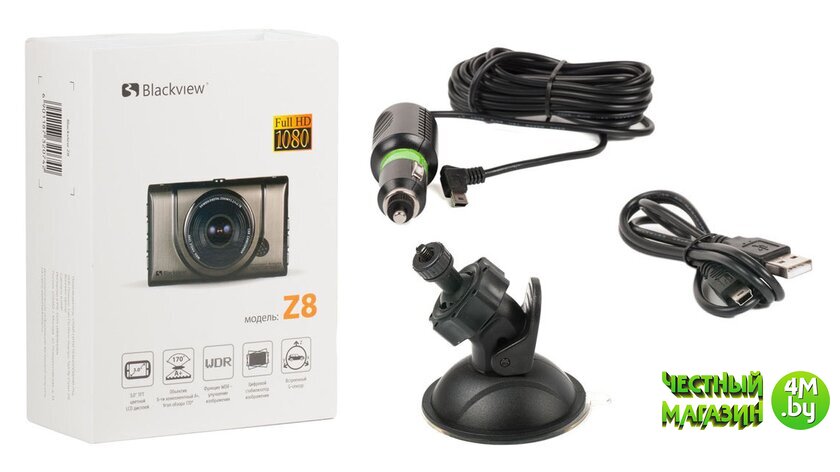 | Комплектация | Автомобильный видеорегистратор Автомобильное зарядное устройство Крепление-присоска на лобовое стекло (поворотное) USB-кабель для подключения к ПК Инструкция по эксплуатации Гарантийный талон |