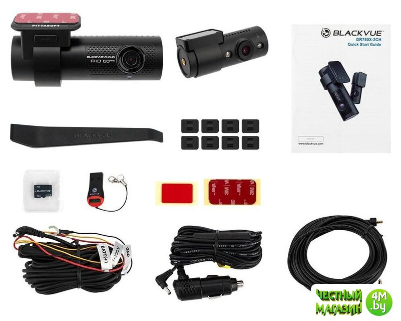| Комплектация | - Видеорегистратор Blackvue DR750S-2CH IR;- Вторая камера с инфракрасной подсветкой;- Кабель для подключения второй камеры(1м);- Карта памяти 32 Гб;- Картридер microSD - USB;- Кабель питания от прикуривателя 4м;- Монтажные площадки для кабеля;- Кабель для прямого подключения CH-3P1;- Запасной 3M скотч для видеорегистратора и второй камеры;- Инструкция по эксплуатации на русском языке с гарантийным талоном внутри. |