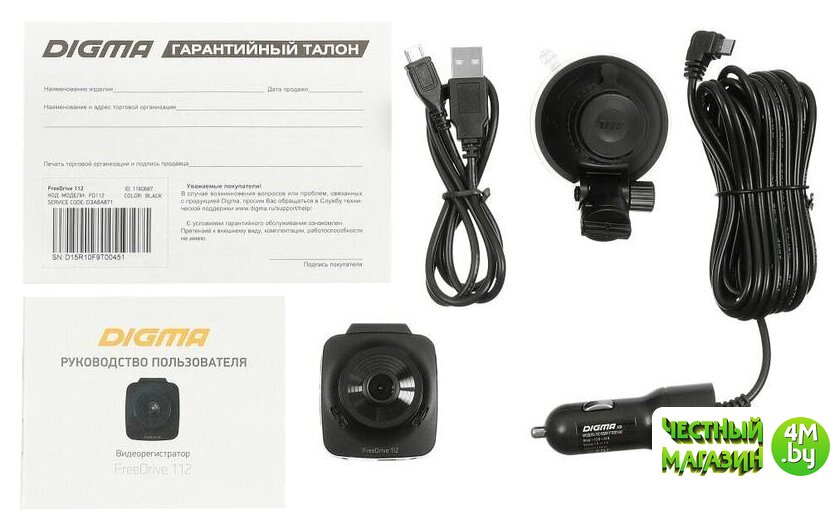 | Комплектация | - Видеорегистратор FreeDrive 112- Крепление на лобовое стекло автомобиля- USB-кабель- Автомобильное зарядное устройство- Руководство пользователя- Гарантийный талон |