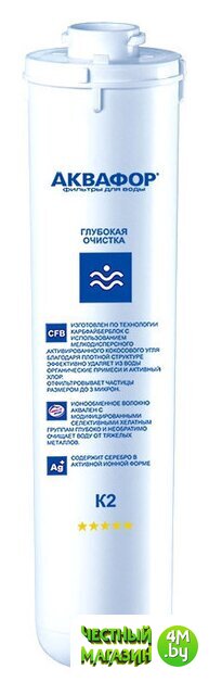 | Описание фильтра | Сменный модуль для глубокой очистки воды. Используется в системах АКВАФОР с отдельным краном. Удаляет вредные примеси, в т.ч. взвеси, хлор, тяжелые металлы и органические вещества. Картридж заменяется вместе с корпусом для бактериостатичности. |