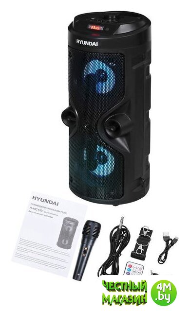 | Комплектация | - колонка;- микрофон;- кабель для микрофона;- USB кабель для зарядки;- AUX кабель;- ремешок;- пульт ДУ;- документация. |